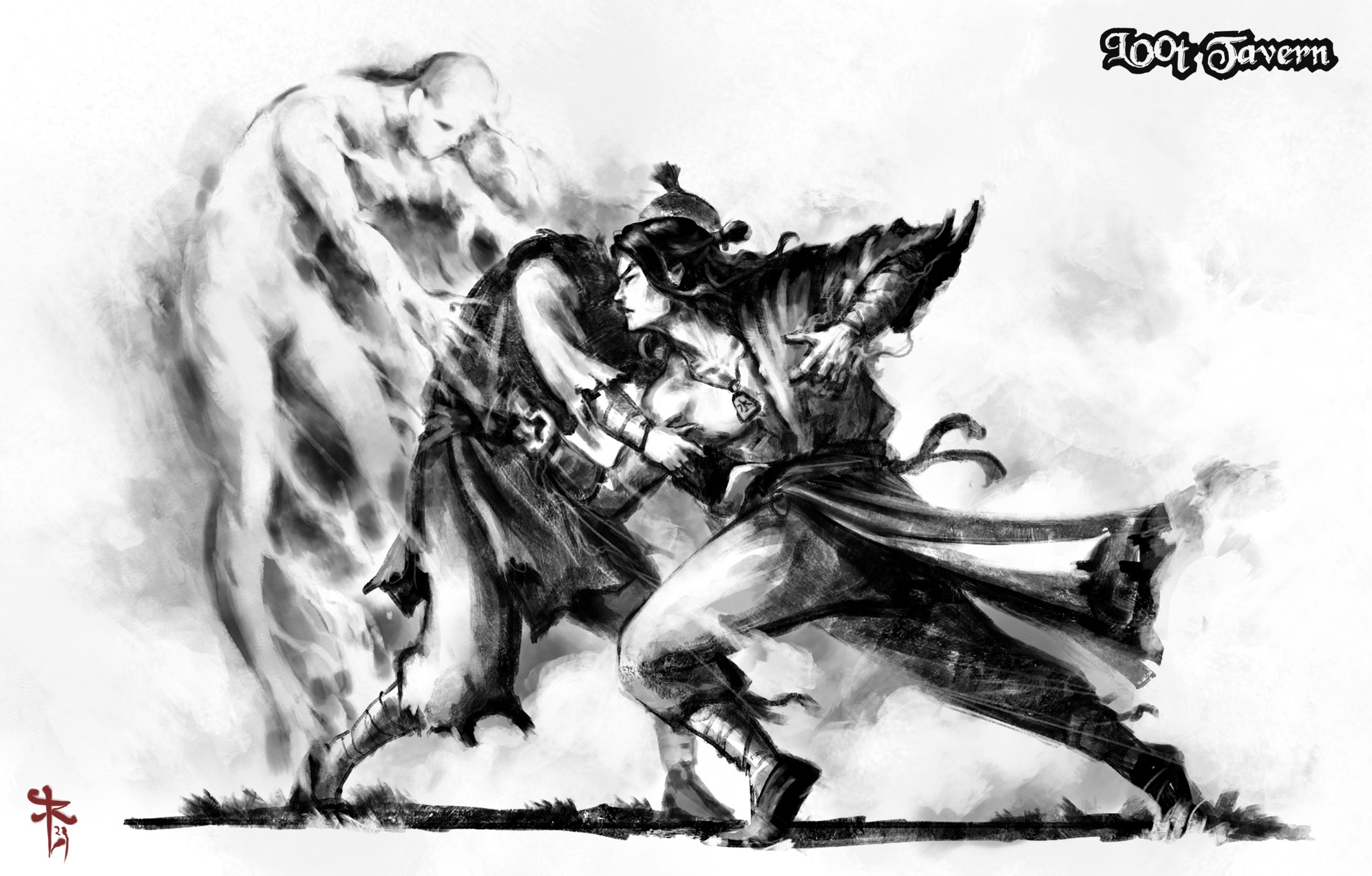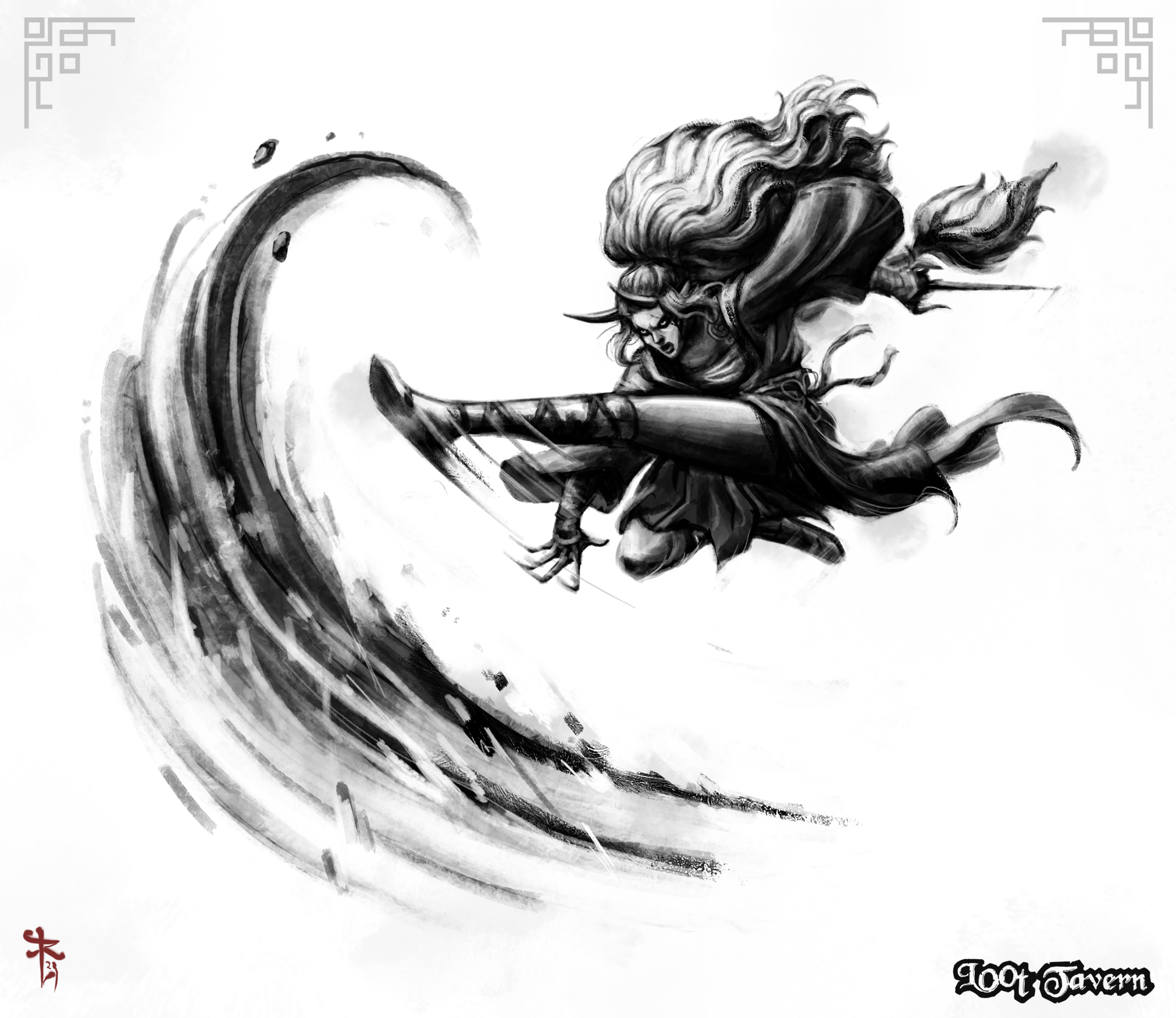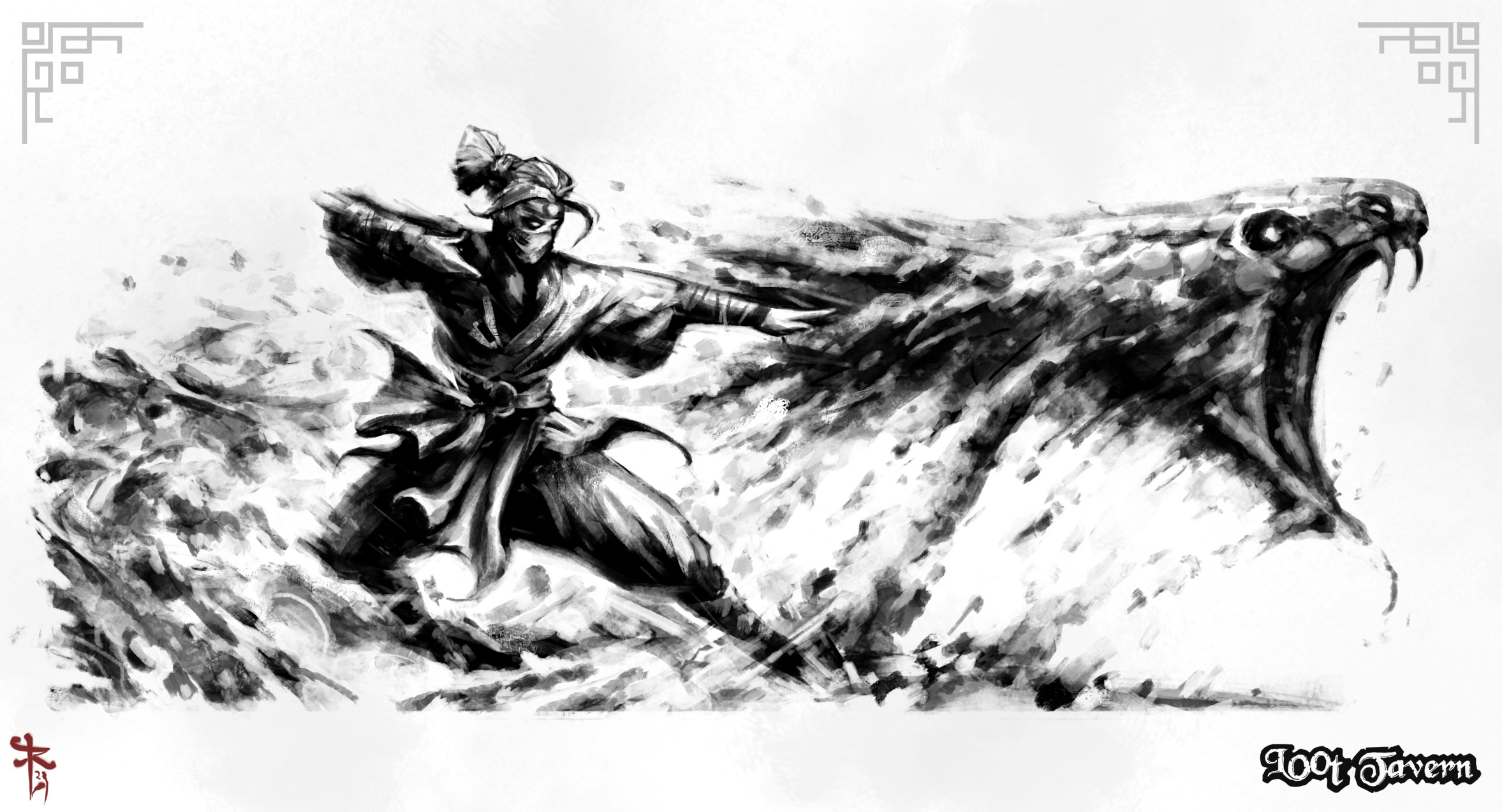 A 5e Tome is a 350+ page tome of kaiju battles, crafting mechanics, and player options inspired by ancient folklore and yokai legend made and published by Loot Tavern. I painted over 50 illustrations mimicking a traditional ink wash style with a fantasy flair, with many of them being used for playing cards, interior illustrations or merchandise.